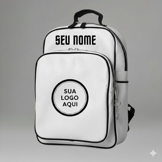 Mochila Masculina Personalizada Branca com detalhes pretos | Resistente, Estilosa e com Seu Nome – LEGEND