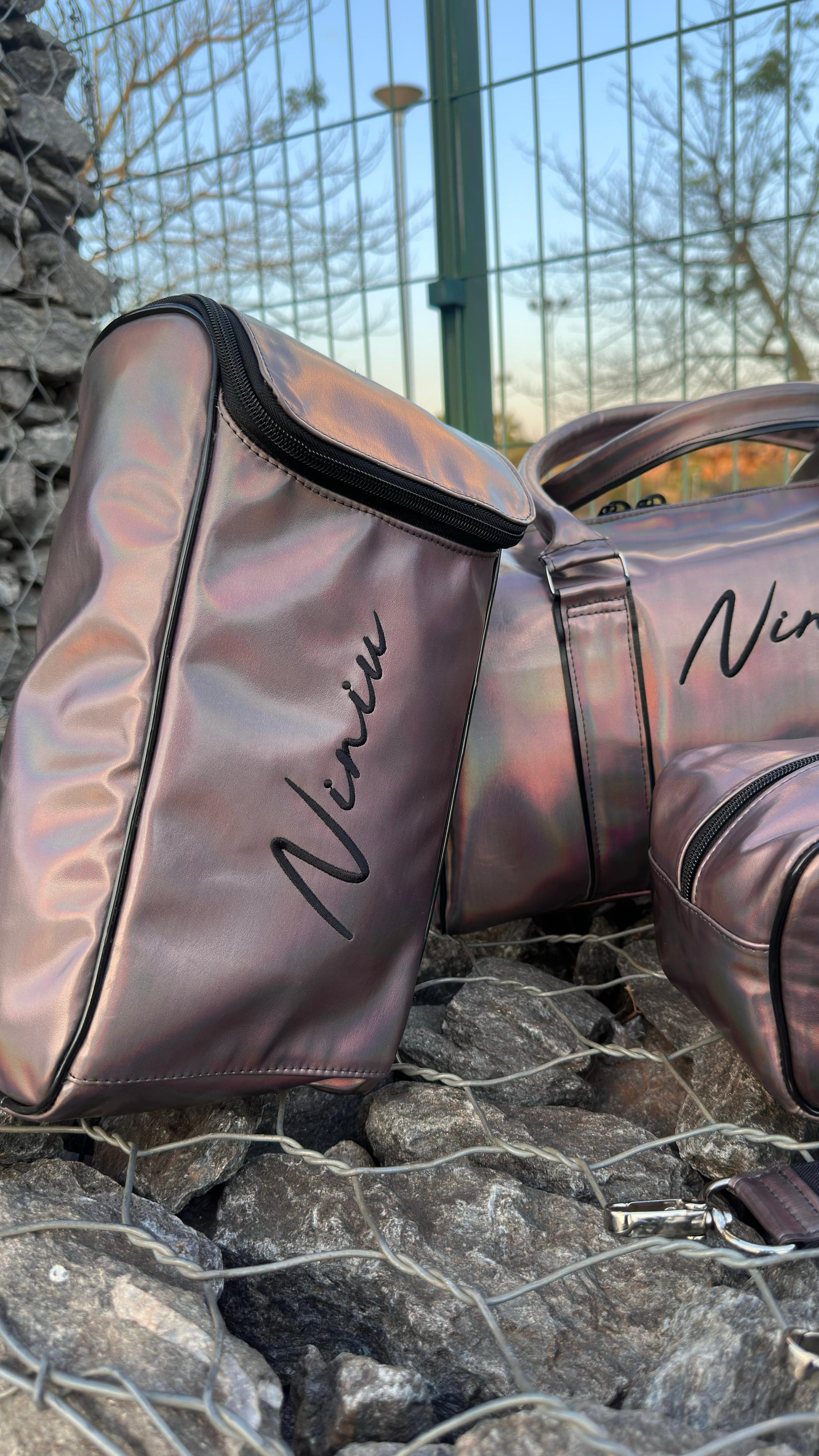 O Kit Mochila + Necessaire Ouro Rosa Personalizadas | LEGEND é ideal para quem busca organização e sofisticação em todos os momentos. Ambos os produtos podem ser personalizados com seu nome, tornando o conjunto único.